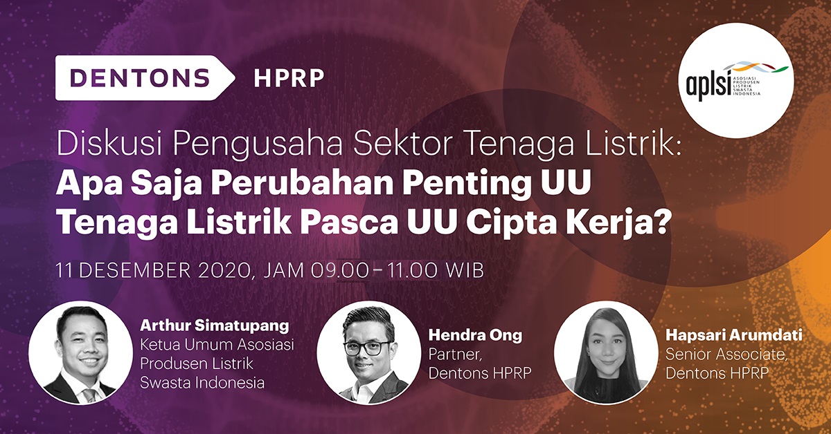 Event Webinar Diskusi Online HPRP & APLSI: "Diskusi Pengusaha Sektor Tenaga Listrik: Apa saja Perubahan Penting UU Tenaga Listrik Pasca UU Cipta Kerja?"