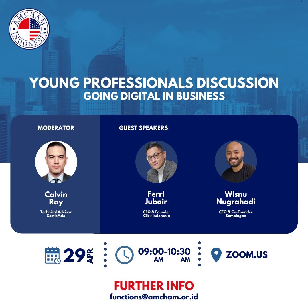 Dear AmCham Members and Friends, Continuing our trend of creating events based on a vote by our committee, AmCham’s Young Professionals Committee is privileged to welcome Ferri Jubair, CEO and founder of Click Indonesia, and Wisnu Nugrahadi, CEO and co-founder of Sampingan, to our meeting on April 29 (09:00–10:30).