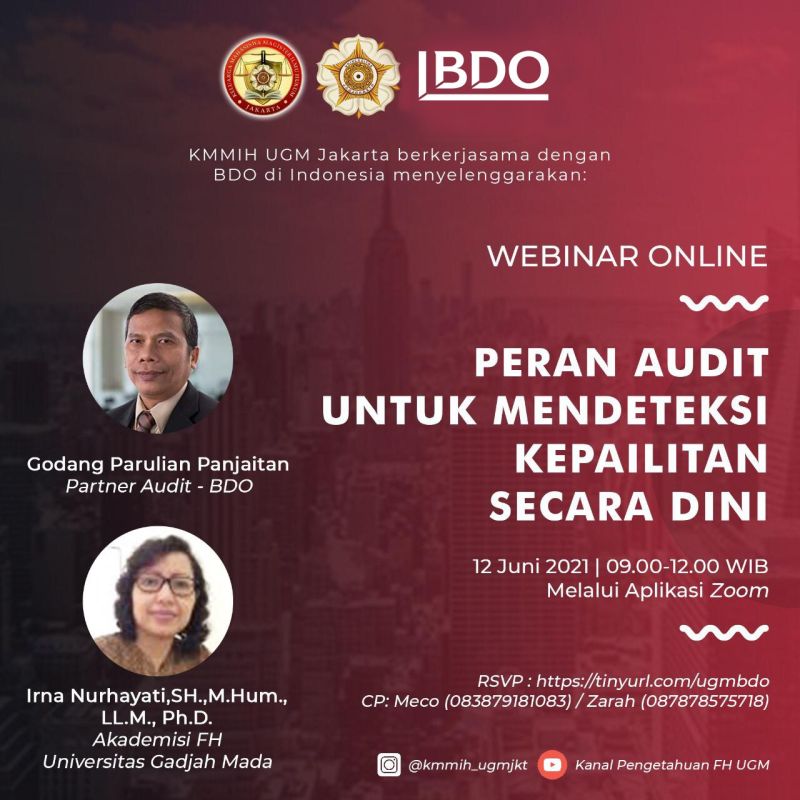 Business Partners, BDO in Indonesia collaborating with KMMIH UGM Jakarta present a webinar, "Peran Audit Untuk Mendeteksi Kepailitan Sejak Dini".