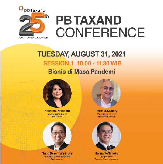 PB TAXAND CONFERENCE 31 AGUSTUS 2021 | 10.00 – 11.30 | Bagaimana pebisnis di Indonesia dalam masa pandemi ini? Pasti ada jurus-jurus khusus dalam bertahan, ber-evolusi dan berkembang dalam masa pandemi.