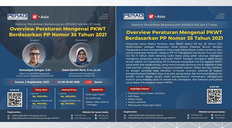 This webinar is recommended for advocates, in-house counsel, professionals in human resources, employers, and workers themselves to better understand the current legal arrangements regarding the rights, obligations, and limitations that can be included in PKWT.