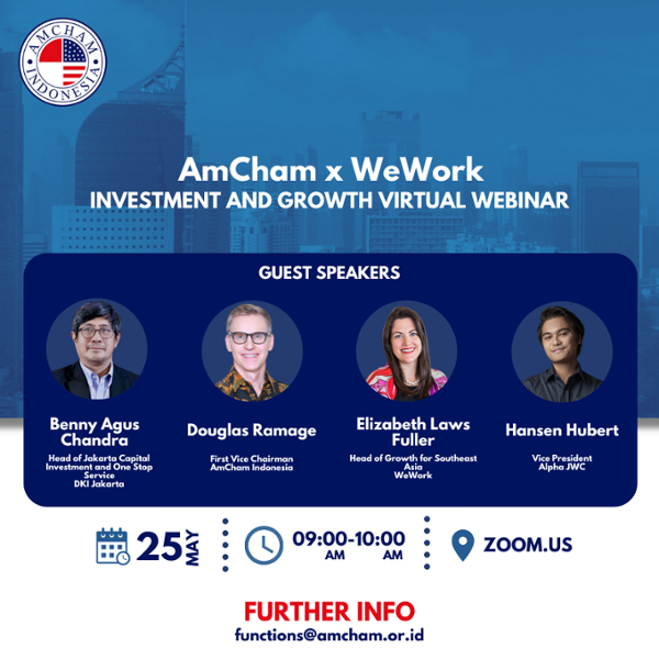 With Southeast Asia poised for recovery, now is the time to emphasize growth and investment. In light of this, AmCham Indonesia together with WeWork is organizing a virtual event with the theme of “Investment and Growth”.