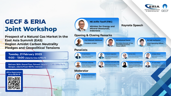 ERIA is co-hosting an event “Prospect of a Natural Gas Market in the East Asia Summit (EAS) Region Amidst Carbon Neutrality Pledges and Geopolitical Tensions” with the Gas Exporting Countries Forum (GECF)