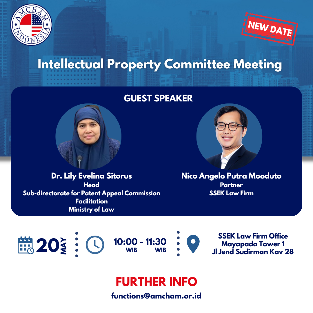 We would like to inform you that our in-person Intellectual Property Committee, focused on the discussion of the Patent Law Revision, originally scheduled for Wednesday, April 30, 2025 at 10:00 – 11:30 (GMT 7), has been rescheduled to Tuesday, May 20, at 10:00–11:30 AM (GMT 7).