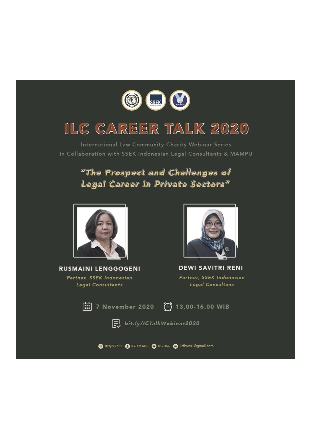 ILC CAREER TALK WEBINAR 2020 "The Prospect and Challenges of Legal Career in Private Sectors"