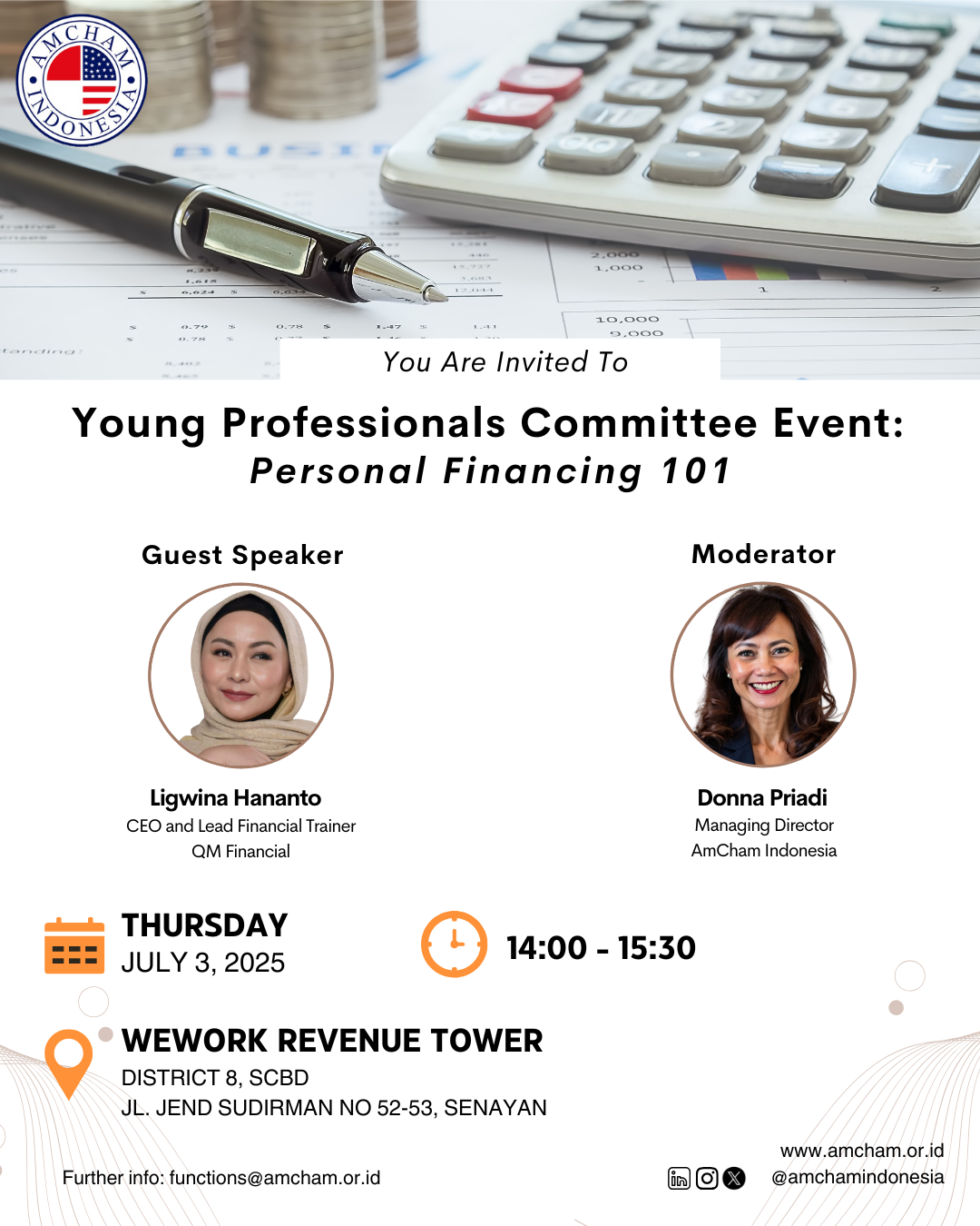 Cancellation must be in writing via e-mail to functions@amcham.or.id latest by noon on Wednesday, July 2, 2025. Please be advised that ‘no-shows’ may be billed at full price.