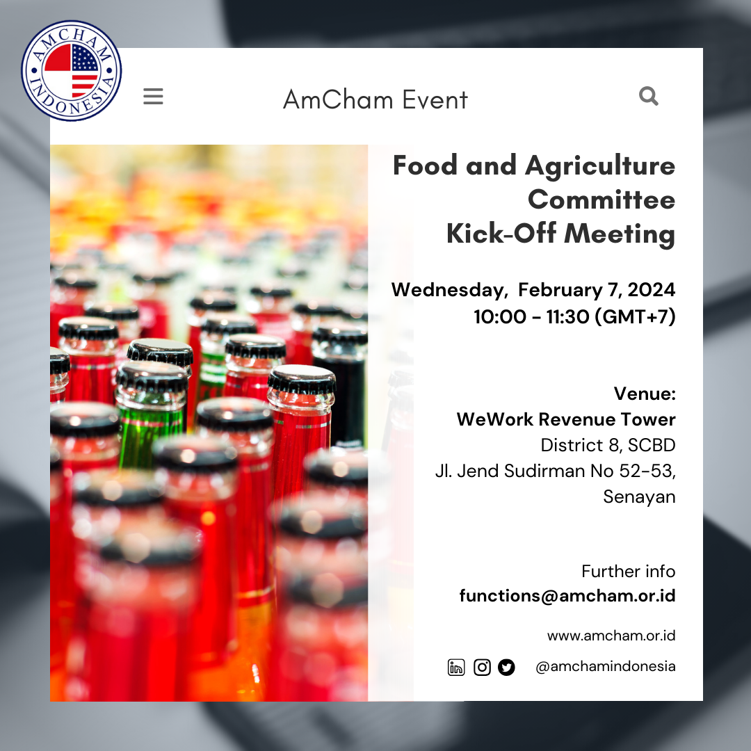 The meeting will discuss priority issues – mandatory halal certification, the excise duty on plastic and sugar-sweetened beverages (SSB), the new import policy, and other issues related to trade and investment in the sector. As Indonesia is entering the political season, the committee will also address ways to strategize advocacy efforts in 2024.